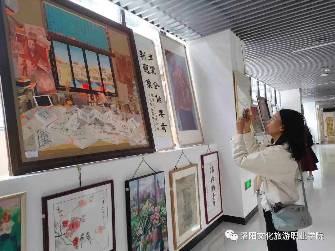 本次书画展共展出我省156所高校400幅作品,其中书法作品182幅,绘画作品218幅。米建丽老师参赛作品《生命的驿站》也在展厅展出,她不仅是洛阳文化旅游职业学院的一名高级讲师,更是中国美术家协会会员、中国工笔画学会会员和中国女画家协会会员。图片